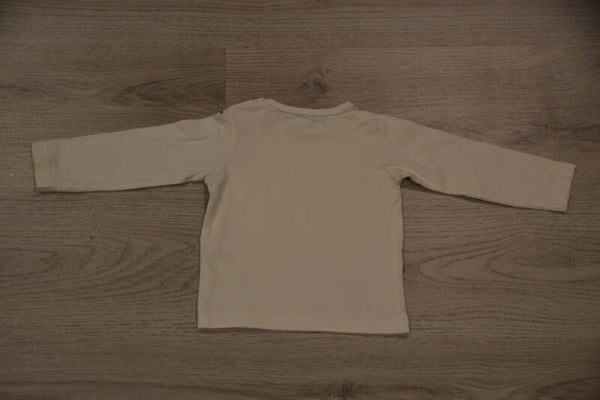 Wit shirt met lange mouwen van de Hema maat 62-68. Op het uiteinde van de mouw zit een vlek.
