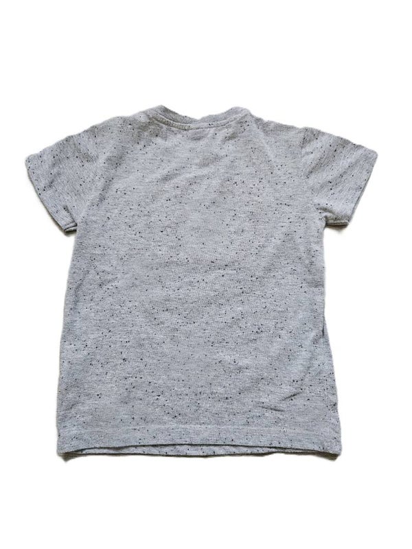 Grijs t-shirt van Kiki & Koko met de tekst "Game over". Er zit een klein gaatje in de stof bij de tekst "Game over". T-shirt is maat 110.