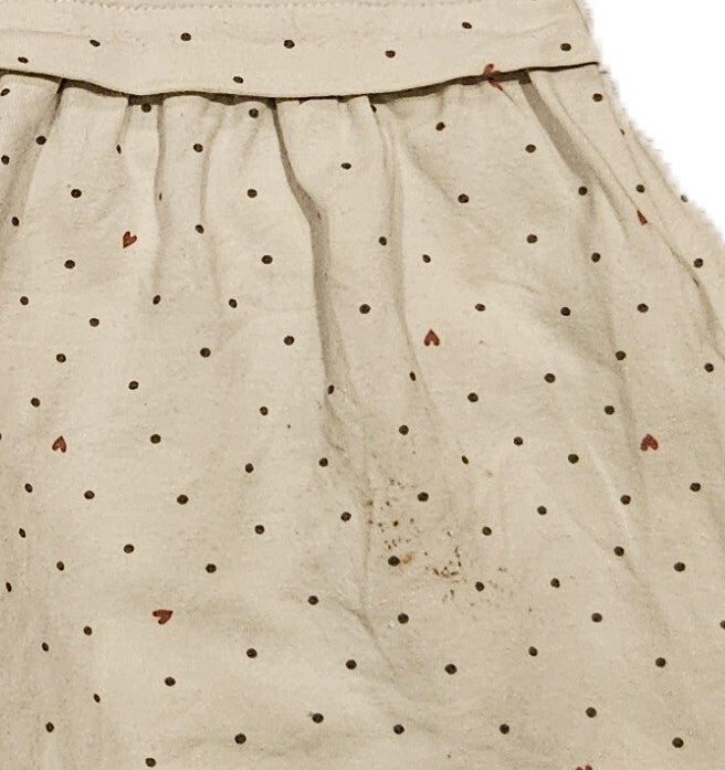 Wit jurkje van H&M met stipjes en hartjes, maat 62. Op de voorkant is er een stukje met wat vlekjes.