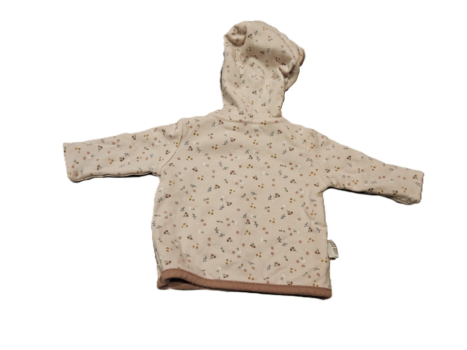 Vest van Little Dutch, maat 62. Het vest is aan beide zijden te dragen. Aan de ene kant is het een oud-roze/taupe effen kleur. De andere zijde is zacht roze met een bloemetjesmotief. Het label kan er uit geknipt worden.