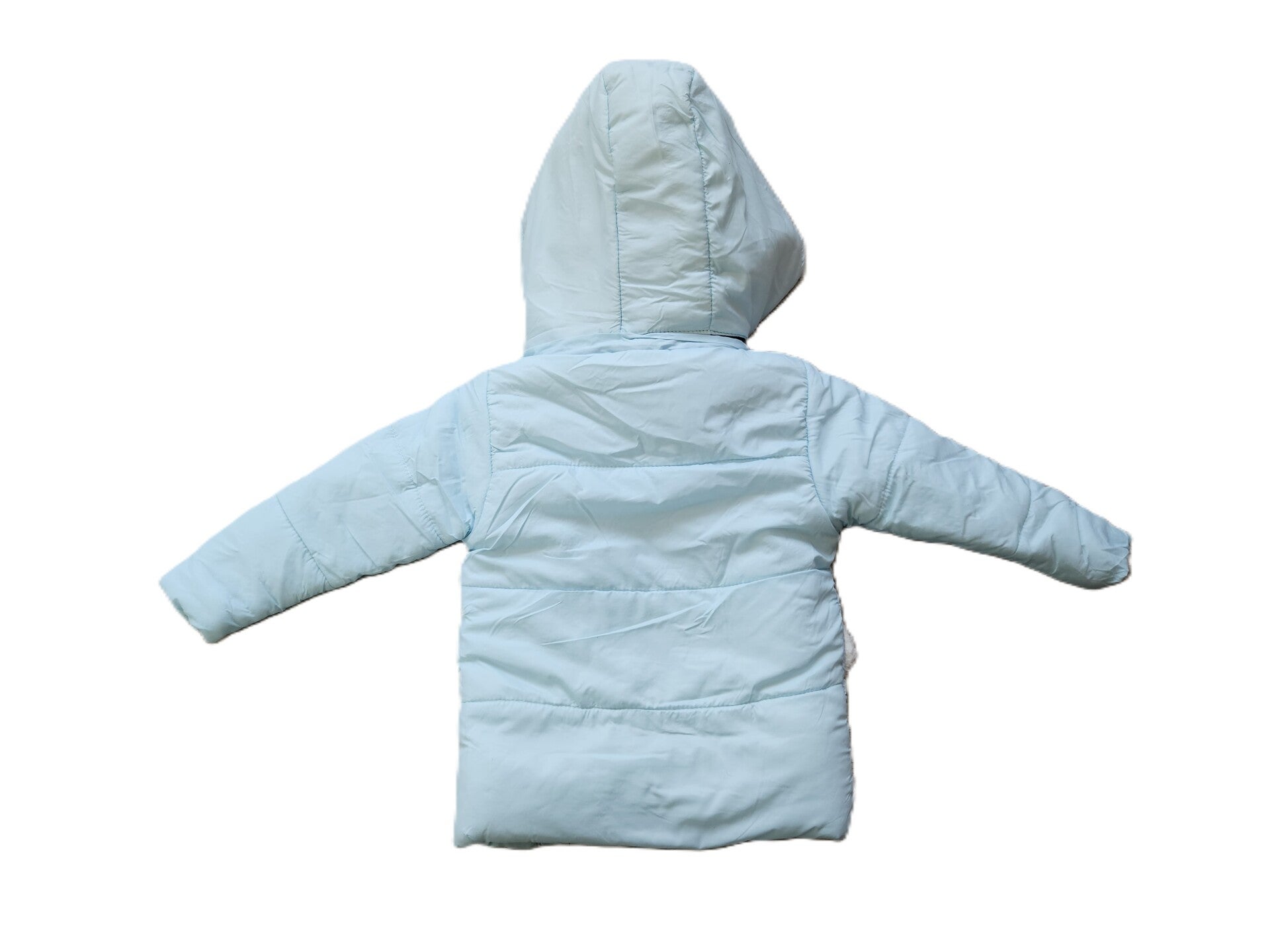 Lichtblauwe winterjas met het gezichtje van een beer, maat 74/80 van het merk Babyoye.