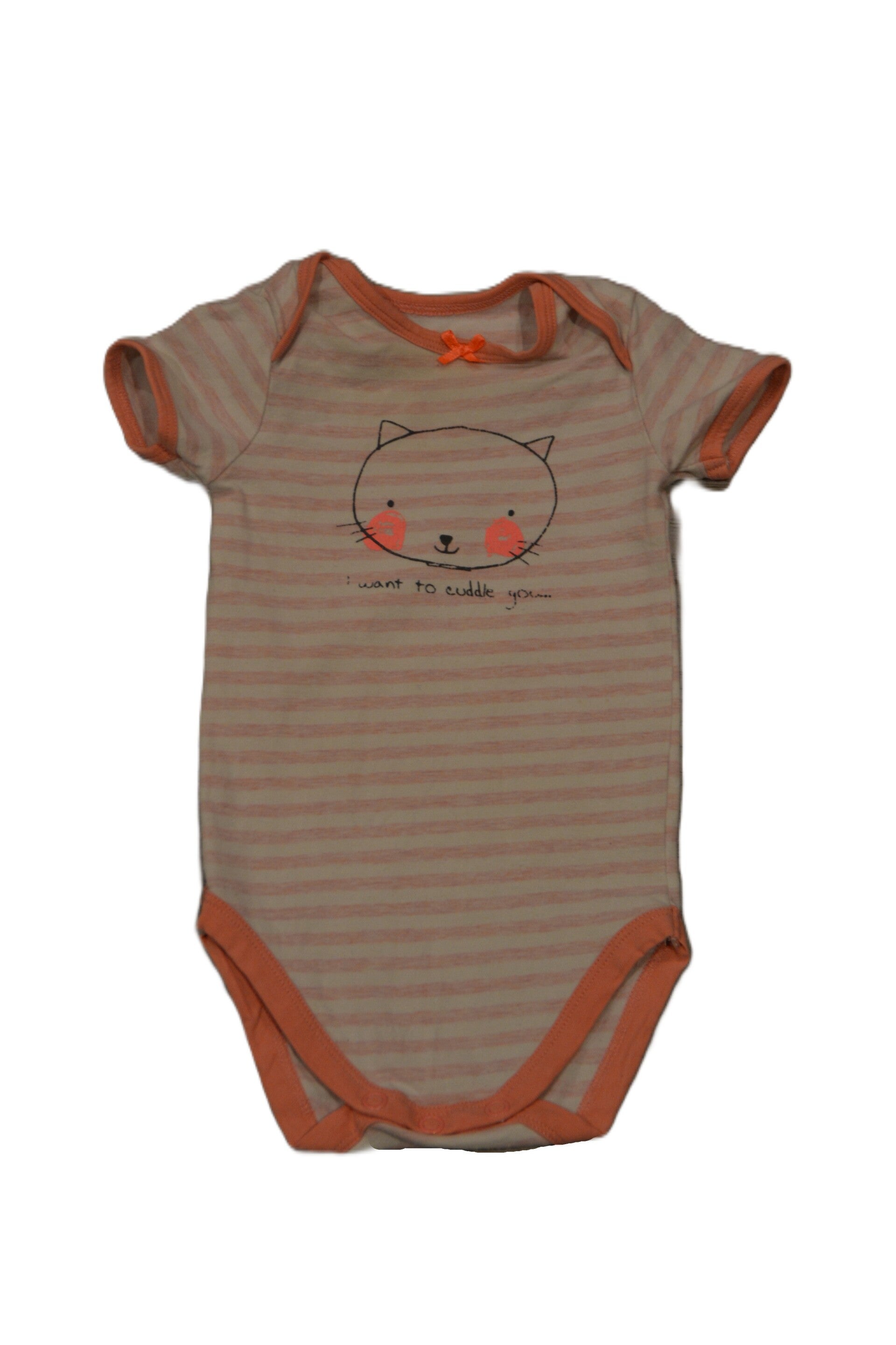 Wit met roze romper van Hema met een poezensnuitje erop, maat 62/68.